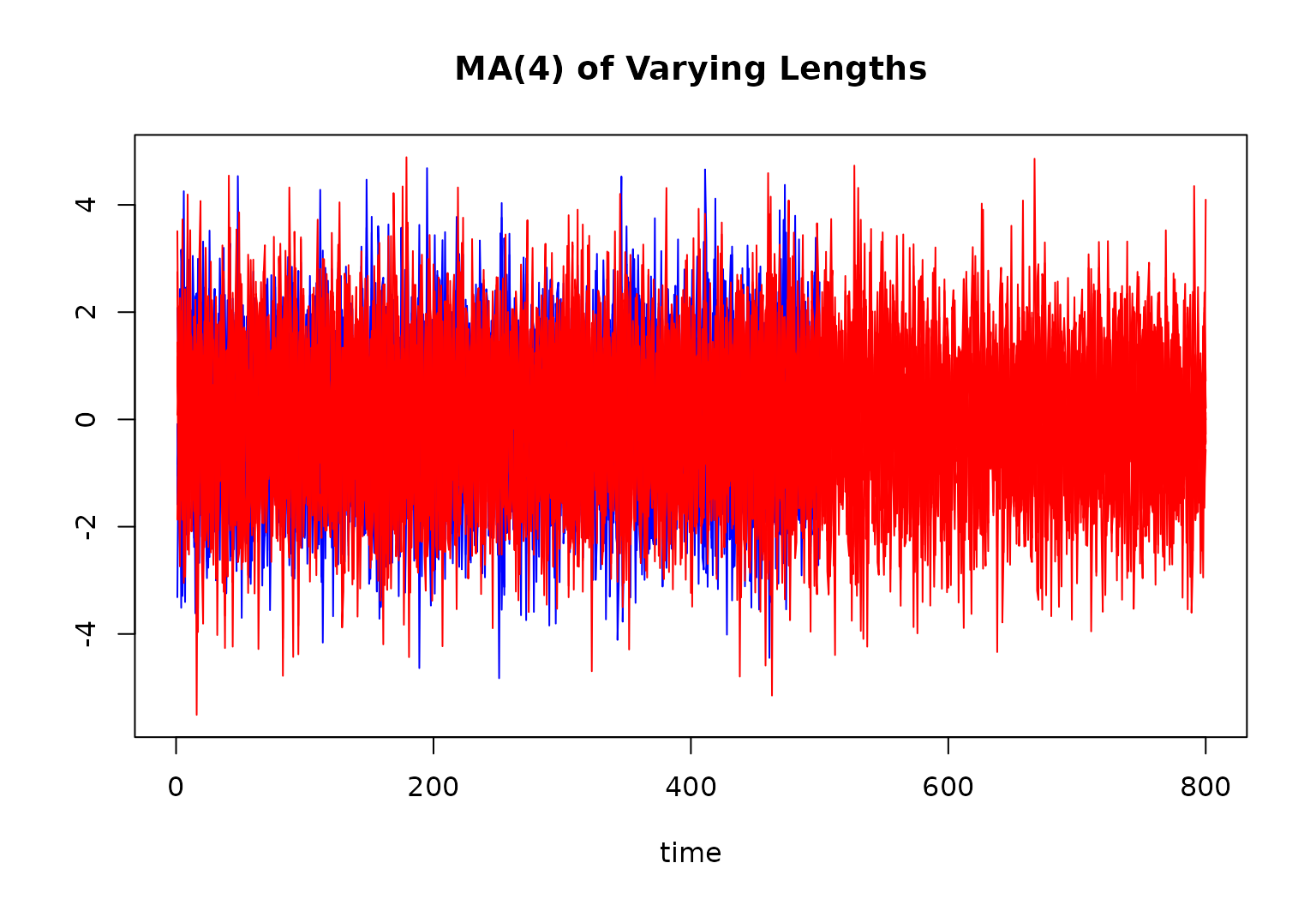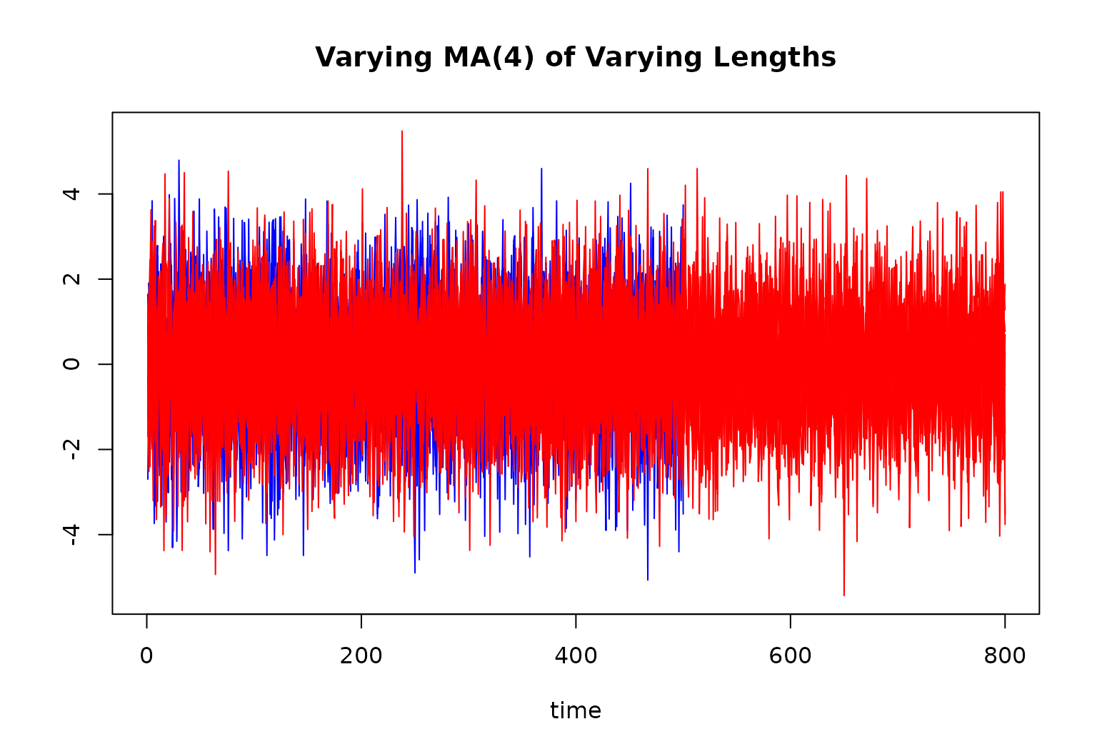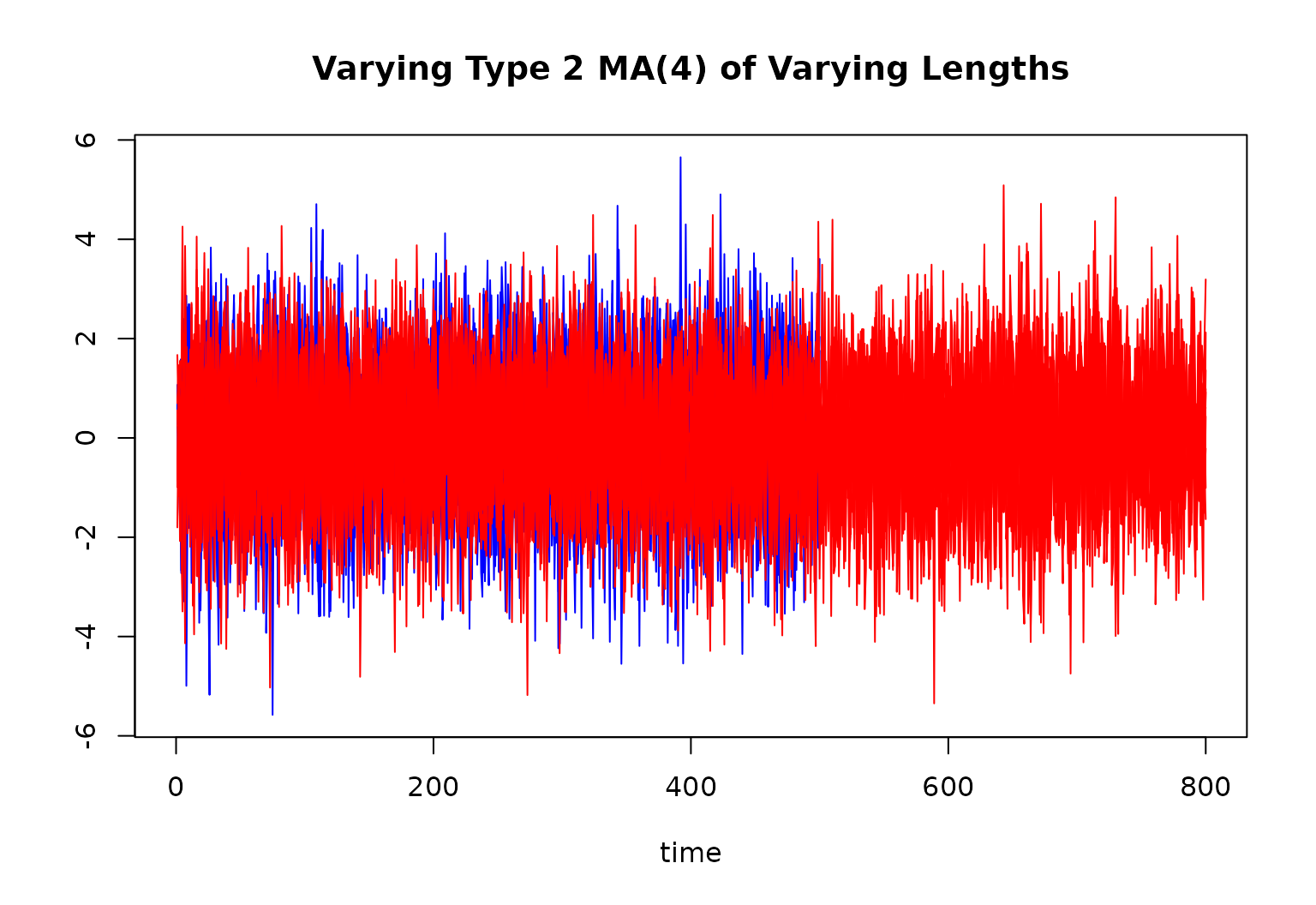 main = "Varying Type 2 MA(4) of Varying Lengths"